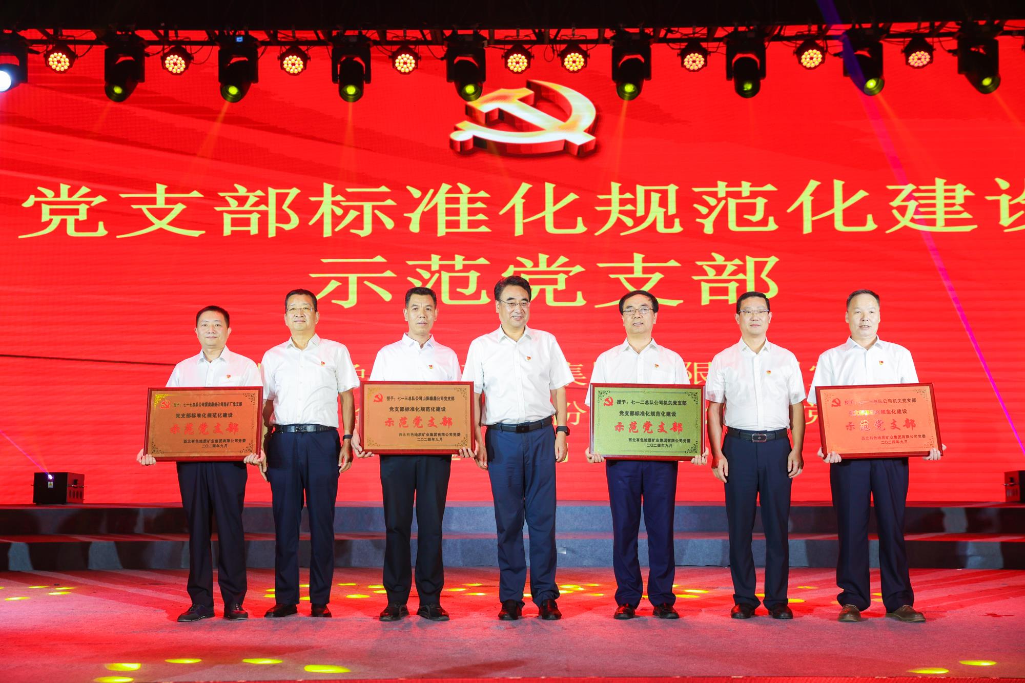 陜西有色金屬集團(tuán)黨委副書記、董事、工會主席王小慶,工會常務(wù)副主席張繼祥應(yīng)邀出席。陜西有色金屬集團(tuán)董事,兩集團(tuán)黨委書記、董事長秦西社為表彰大會致辭。兩集團(tuán)黨委副書記、工會主席肖璐宣讀表彰決定。大會為示范黨支部、兩集團(tuán)命名的權(quán)屬單位黨建品牌進(jìn)行了授牌,為黨支部書記“比業(yè)務(wù)、賽成績、亮經(jīng)驗(yàn)”黨建業(yè)務(wù)模擬展演優(yōu)秀作品進(jìn)行頒獎。