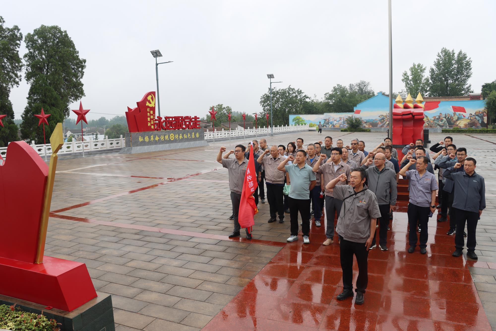 紅色研學(xué)悟初心,傳承革命精神血脈。在鳳翔區(qū)陳村鎮(zhèn)紫荊村“西府出擊”紅色教育基地,講解員帶領(lǐng)大家參觀了屈家山西北野戰(zhàn)軍司令部舊址。一件件斑駁的革命文物、一張張泛黃的歷史照片,生動再現(xiàn)了老一輩革命家“浴血奮戰(zhàn)求解放”的光輝歷程。黨員干部在沉浸式研學(xué)中,深刻感悟西北野戰(zhàn)軍“不怕犧牲、勇于擔(dān)當(dāng)”的革命精神,真切體會到革命道路的艱辛與革命成果的珍貴。活動尾聲,全體黨員在黨旗下莊嚴重溫入黨誓詞,以鏗鏘誓言重憶初心使命。