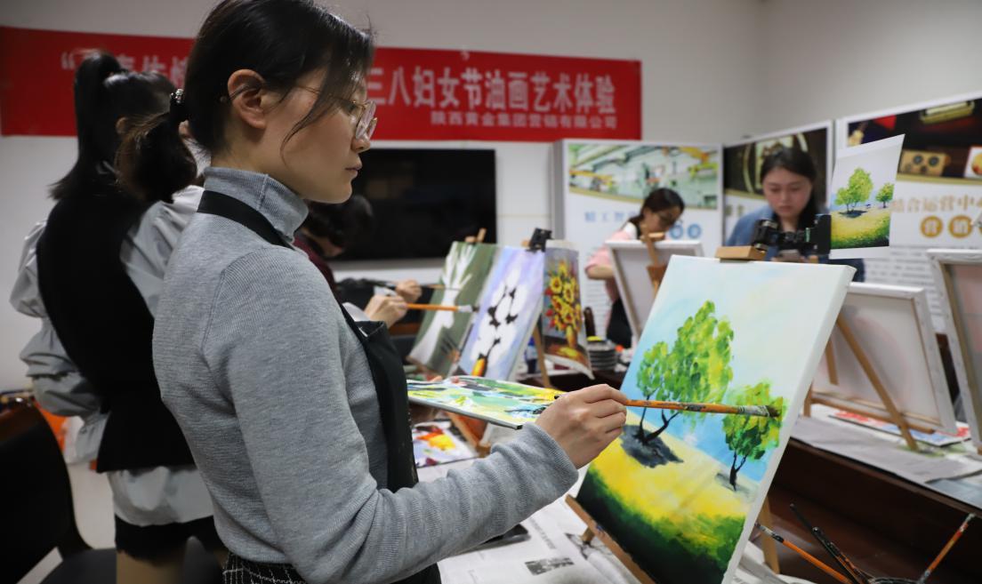 黃金營銷公司 營銷公司工會(huì)組織女職工開展“丹青傳情·歡樂共享”三八婦女節(jié)油畫藝術(shù)體驗(yàn)活動(dòng)。大家在油畫老師的指導(dǎo)下進(jìn)行零基礎(chǔ)學(xué)習(xí)。活動(dòng)氣氛熱烈,調(diào)顏料、打線稿,大家互相欣賞、拍照留念。
