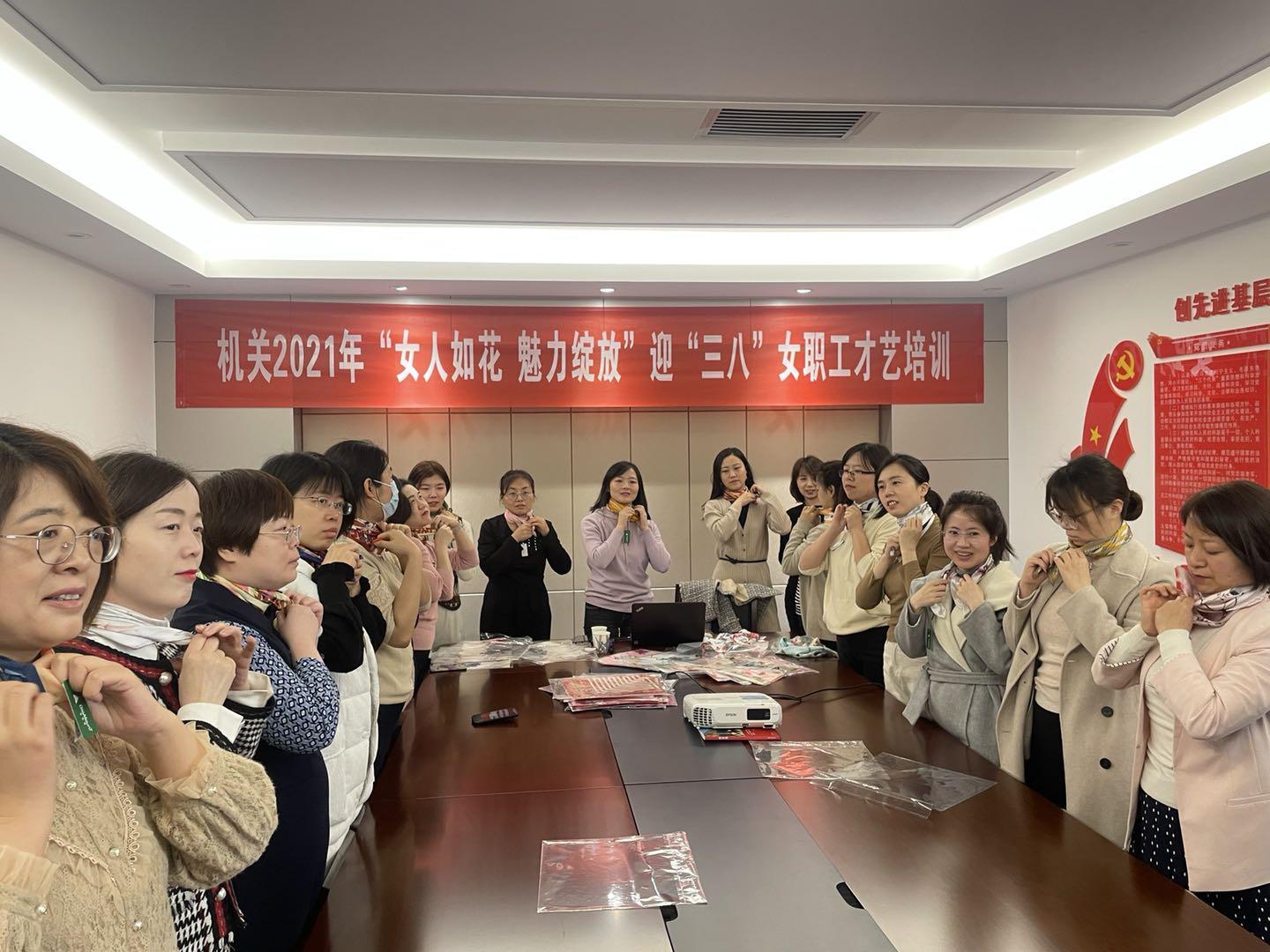 機(jī)關(guān) 地礦集團(tuán)、黃金集團(tuán)機(jī)關(guān)舉辦了“女人如花 魅力綻放”迎“三八”女職工才藝培訓(xùn)活動(dòng)。特邀專業(yè)老師教授絲巾禮儀與插花技巧等內(nèi)容。老師在現(xiàn)場(chǎng)一一進(jìn)行了示范教學(xué),請(qǐng)女職工親自體驗(yàn)?;顒?dòng)以花感人,借用絲巾與花木來抒發(fā)地勘女職工的高雅情懷,給女職工帶來了浪漫與美的感受,受到女職工的一致好評(píng)。
