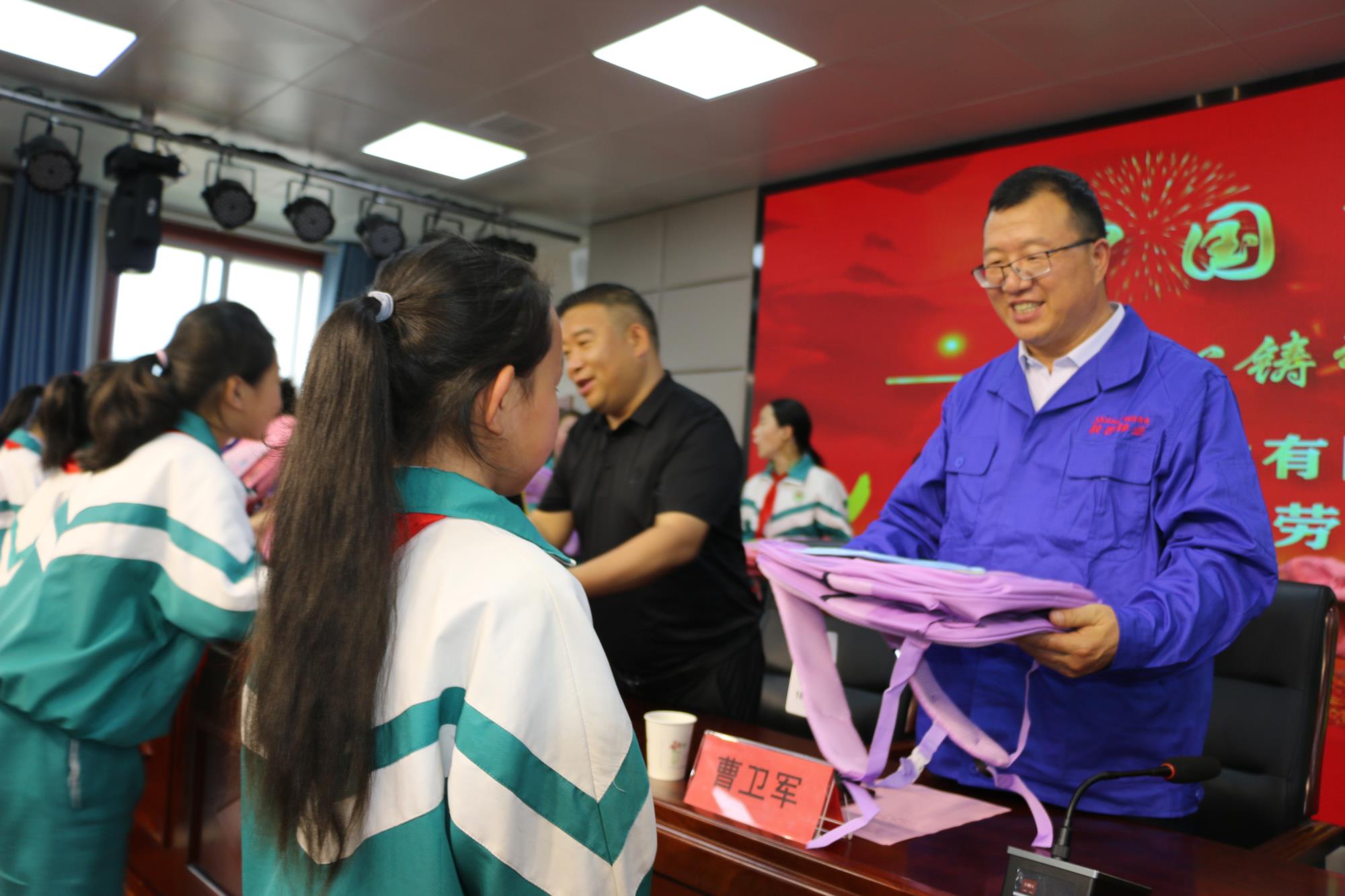 活動最后,陜西鋅業(yè)公司向困難學生贈送了書包、文具盒等學習用品,并合影留念。向孩子們送上節(jié)日祝福、共同慶?!傲粌和?jié)”。