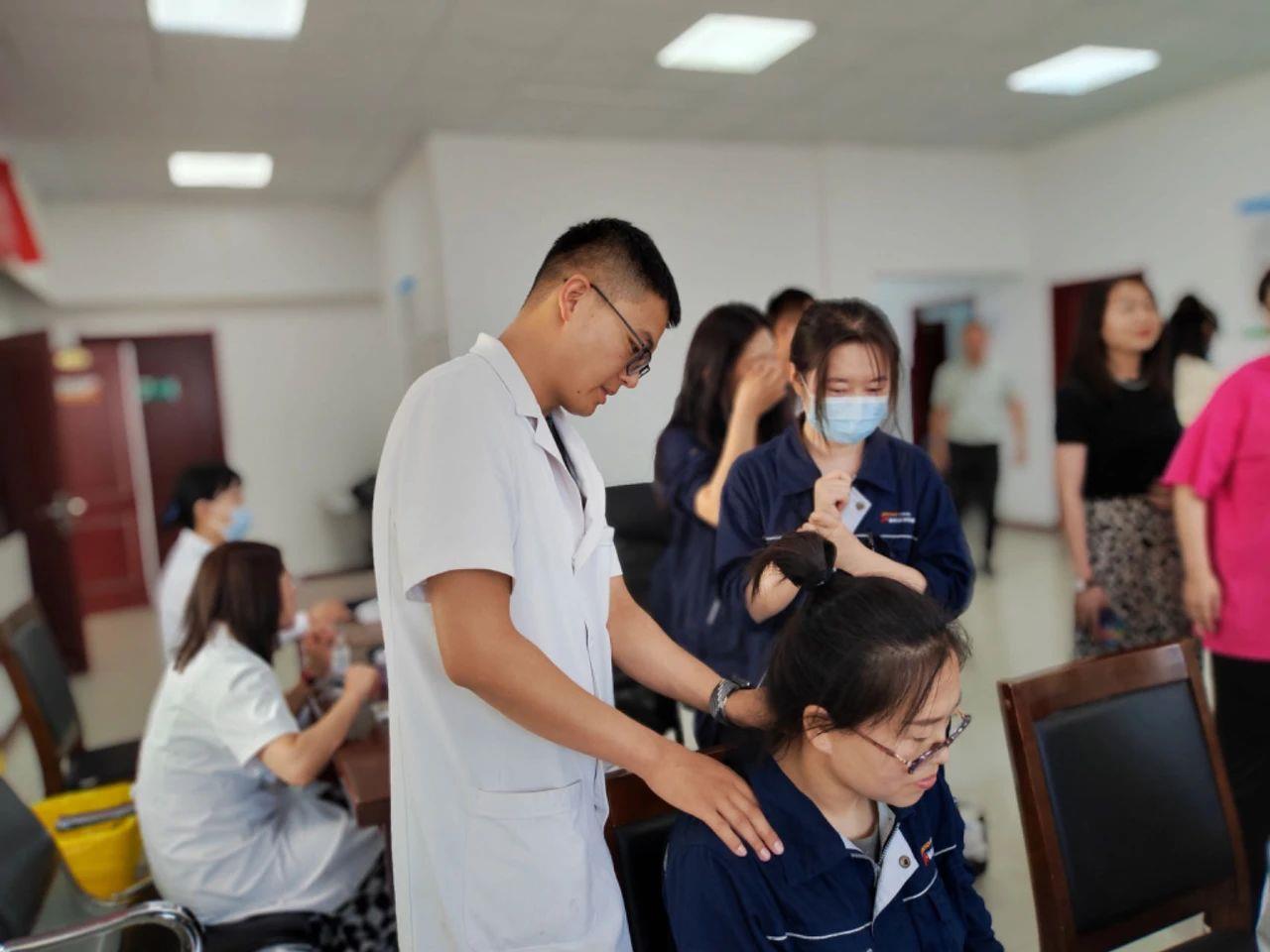 在針灸康復(fù)科專家的診位前,不少職工前來體驗(yàn)推拿、拔罐和針灸,感受著傳統(tǒng)醫(yī)學(xué)的博大精深;口腔科專家為職工們進(jìn)行口腔檢查,并給予專業(yè)的護(hù)理建議,為口腔健康筑起堅固防線;內(nèi)分泌科專家針對職工們常見的血糖、血脂問題給予科學(xué)的飲食和運(yùn)動指導(dǎo),幫助職工們建立起健康的生活方式......此外,醫(yī)護(hù)人員還為職工們測量血壓、血糖,進(jìn)行心電圖、甲狀腺B超檢查等項(xiàng)目,幫助職工全面了解自己的身體狀況,做到疾病早發(fā)現(xiàn)、早診斷、早治療。