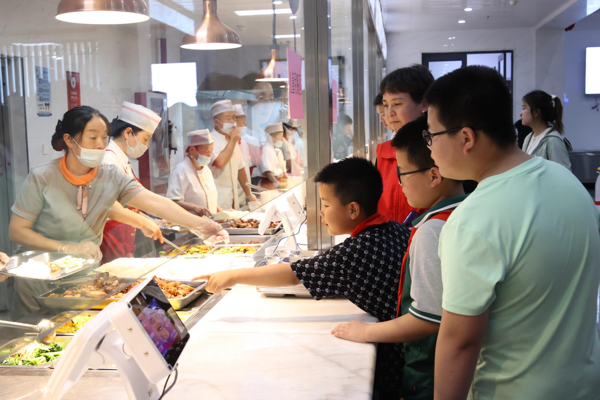 職工食堂內(nèi),親子時(shí)光溫馨延續(xù)。孩子們有條不紊地排隊(duì)取餐,與家長(zhǎng)圍坐一堂,共同探討參觀(guān)的收獲與感悟。豐富的菜肴和輕松愉快的氛圍讓親子關(guān)系更加融洽,在“心貼心”的交流中,孩子們更真切地理解了父母工作的辛勞與價(jià)值。