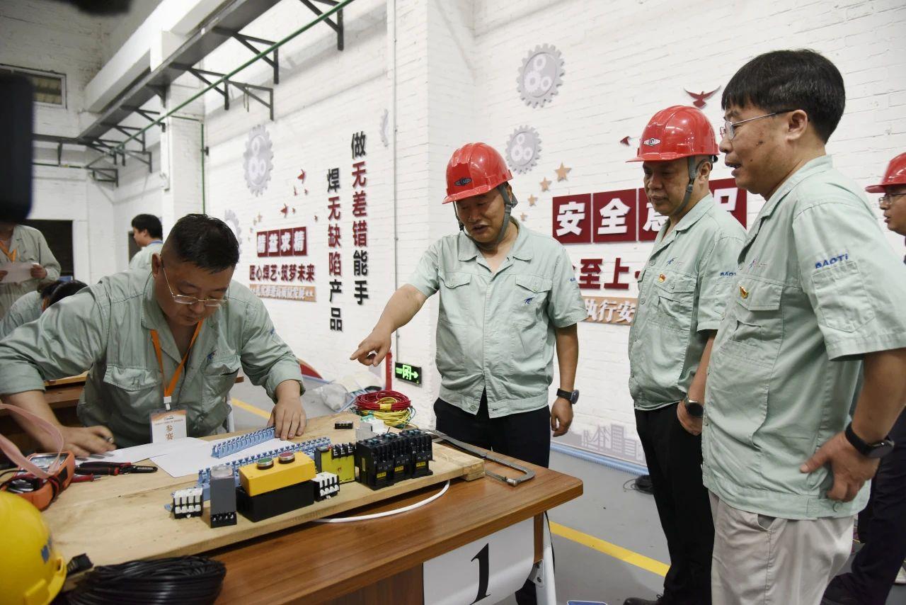為深入踐行人才強(qiáng)企戰(zhàn)略,全方位鍛造高素質(zhì)產(chǎn)業(yè)工人隊伍,為企業(yè)高質(zhì)量發(fā)展注入強(qiáng)勁人才動能,7月2日上午,寶鈦集團(tuán)2025年天車工、維修電工職工職業(yè)技能競賽,班組建設(shè)大賽拉開序幕。寶鈦集團(tuán)領(lǐng)導(dǎo)陳戰(zhàn)乾、賀治民、耿愛武現(xiàn)場觀摩指導(dǎo)實操比賽,為參賽選手加油鼓勁。