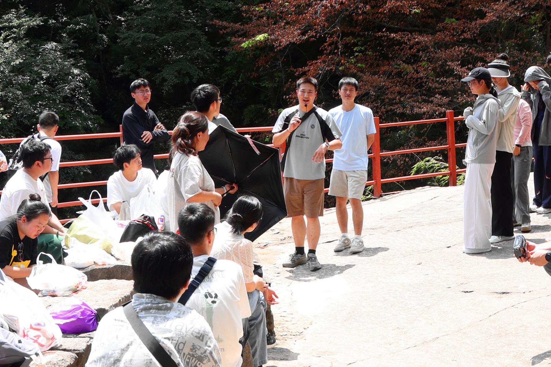 抵達(dá)目的地后,全員進(jìn)行了熱身,為登山做好充分準(zhǔn)備。隨后自由組合成4個(gè)小組,推選組長(zhǎng)并統(tǒng)籌協(xié)調(diào)。徒步途中,一幕幕暖心場(chǎng)景接連上演:體力充沛的青年主動(dòng)接過(guò)同伴的背包,陡峭路段上隊(duì)員們手手相扣形成穩(wěn)固“人鏈”,有人步伐放緩時(shí),身旁立刻響起“加油,我們一起走”的鼓勁聲,更有不少人沿途彎腰撿拾垃圾,以行動(dòng)踐行“無(wú)痕戶外”理念……這些雙向奔赴的扶持,讓攀登之路充滿溫度,更生動(dòng)詮釋了“共攀高峰”絕非單打獨(dú)斗,而是并肩前行的深層含義。最終,在全員互助下,所有成員成功登頂,無(wú)人掉隊(duì)。山頂?shù)膱F(tuán)建游戲?qū)夥胀葡蚋叱保骸敖叹氄f(shuō)”游戲中,大家全神貫注捕捉指令,在動(dòng)靜之間錘煉反應(yīng)與專注;“運(yùn)動(dòng)大腦”環(huán)節(jié)里,拋接水瓶的互動(dòng)讓團(tuán)隊(duì)配合愈發(fā)流暢,笑聲與喝彩聲在山間回蕩。