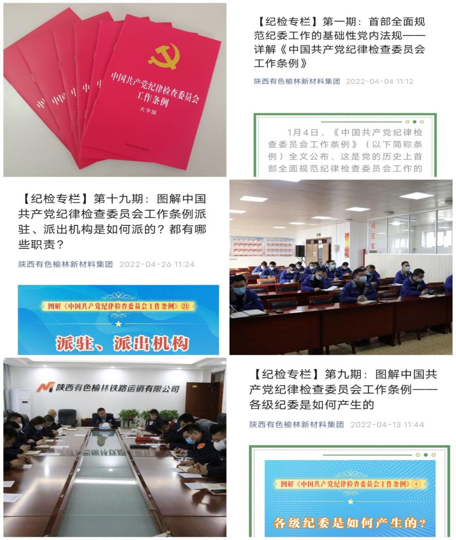 為落實(shí)陜西有色金屬集團(tuán)紀(jì)委關(guān)于學(xué)習(xí)宣傳貫徹《中國共產(chǎn)黨紀(jì)律檢查委員會工作條例》(下稱《條例》)的要求,榆林新材料集團(tuán)紀(jì)委全面安排部署,堅(jiān)持橫向到邊、縱向到底的工作舉措,在全公司范圍內(nèi)掀起學(xué)習(xí)貫徹《條例》熱潮。
