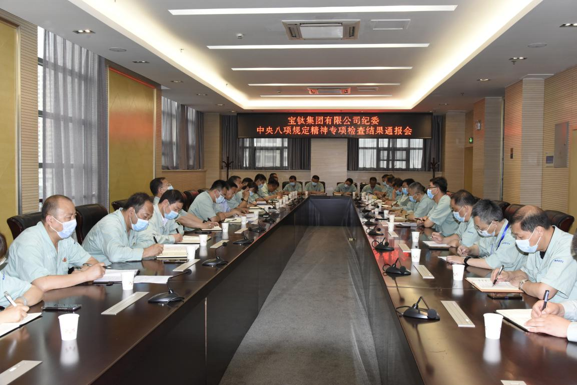 6月9日下午,在寶鈦賓館七樓學(xué)術(shù)討論廳,寶鈦集團紀(jì)委組織召開中央八項規(guī)定精神專項檢查結(jié)果通報會,寶鈦集團全資子公司、控股公司黨政負責(zé)人、紀(jì)委書記(紀(jì)檢委員)、紀(jì)檢部門干部參加了會議,紀(jì)委書記賀治民出席會議,紀(jì)委副書記劉軍發(fā)主持會議。