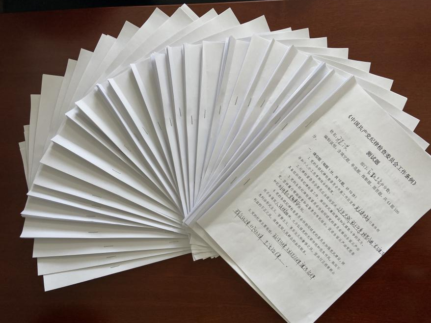 為檢驗學習成果,2022年6月15日,公司紀委量身定制了一場測試,公司各基層紀檢干部共計24人參加了測試。本次測試采取了統(tǒng)一命題、集中組織、閉卷答題的方式,題型包括填空題、單選題、簡答題等共44題,答題時長1小時。通過測試,有針對性的進行查漏補缺,夯實紀檢干部的理論基礎(chǔ),進一步強化應用水平,提升業(yè)務(wù)能力。