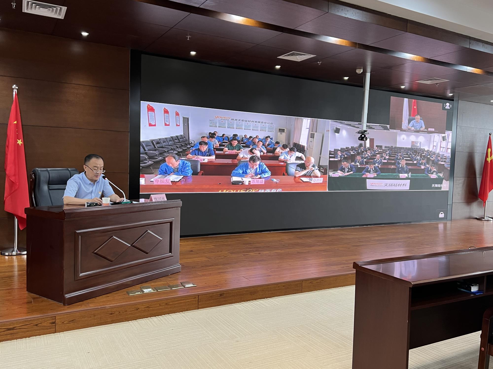 本次宣講會以視頻形式召開。集團公司總部機關四支部全體黨員在主會場參會,天瑞硅材料公司、天宏硅業(yè)公司黨員干部在分會場參會。