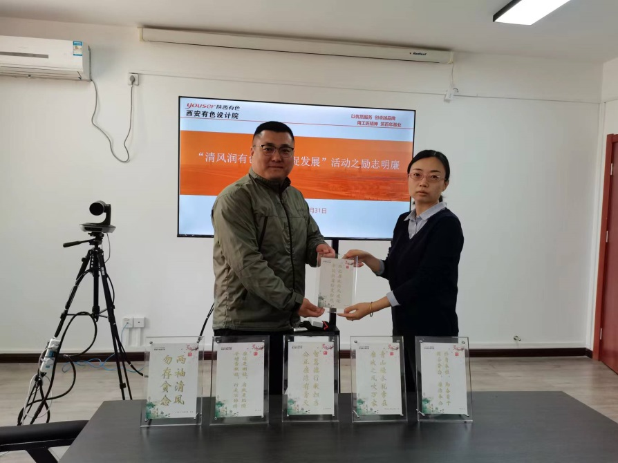 活動(dòng)現(xiàn)場(chǎng),西安有色冶設(shè)計(jì)研究院結(jié)合機(jī)關(guān)各業(yè)務(wù)部門和生產(chǎn)經(jīng)營(yíng)各單位崗位特點(diǎn),開展了廉潔從業(yè)學(xué)習(xí)討論,與每名與會(huì)黨員領(lǐng)導(dǎo)干部簽訂了廉潔承諾書,并為各子公司、機(jī)關(guān)各職能部門負(fù)責(zé)人發(fā)放了廉潔警示牌。