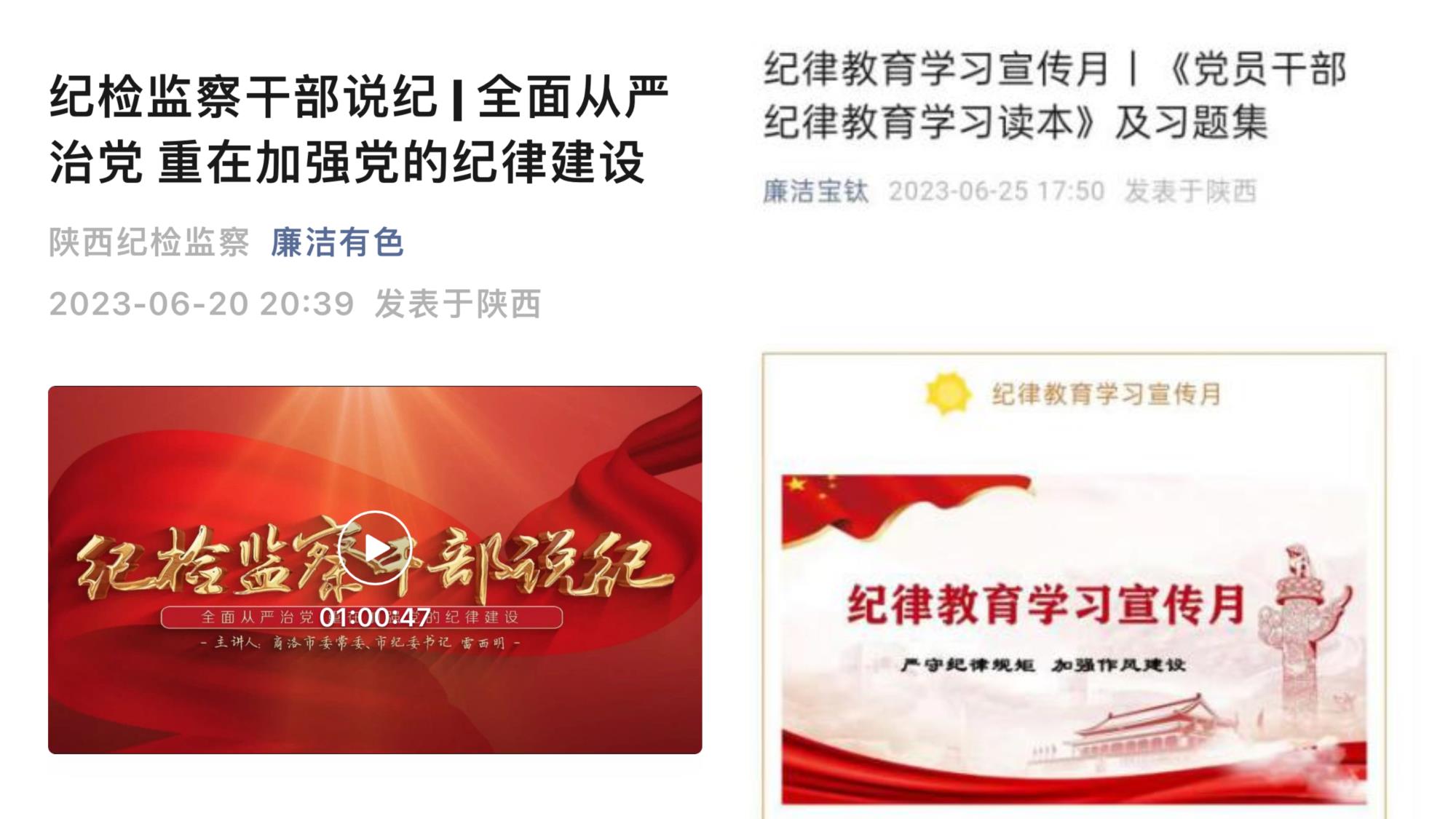 學(xué)紀(jì)守紀(jì)悟思想。利用“廉潔有色”微信公眾平臺(tái)發(fā)布省紀(jì)委監(jiān)委要求學(xué)習(xí)的《黨員干部紀(jì)律教育學(xué)習(xí)讀本》《紀(jì)檢監(jiān)察干部說紀(jì)》系列視頻課程和《關(guān)于在“陜西紀(jì)檢監(jiān)察”微信公眾號(hào)參與全省紀(jì)律教育學(xué)習(xí)宣傳月黨規(guī)黨紀(jì)知識(shí)測(cè)試活動(dòng)的通知》,積極動(dòng)員黨員、干部參與知識(shí)測(cè)試。各級(jí)黨組織以支部為單位組織開展學(xué)紀(jì)守紀(jì)交流活動(dòng),黨員干部紛紛撰寫紀(jì)律教育學(xué)習(xí)心得體會(huì)文章。權(quán)屬企業(yè)金鉬集團(tuán)精心制作了四期“紀(jì)法小課堂”欄目,利用微信公眾號(hào)向黨員、干部、職工推送,漢中鋅業(yè)、陜西鋅業(yè)黨委書記講授紀(jì)律教育專題黨課,促使黨員、干部、職工對(duì)黨紀(jì)條規(guī)全面理解、準(zhǔn)確領(lǐng)會(huì)、把握真諦、入腦入心?;顒?dòng)期間,全系統(tǒng)各級(jí)黨組織共組織“悟思想”學(xué)紀(jì)守紀(jì)交流活動(dòng)180次,9989人完成全省紀(jì)律教育學(xué)習(xí)宣傳月活動(dòng)黨規(guī)黨紀(jì)知識(shí)測(cè)試。