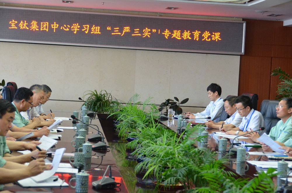 6月9日,寶鈦集團黨委中心學習組在機關(guān)九樓會議室召開“三嚴三實”專題學習會,集中學習了習近平總書記關(guān)于“三嚴三實”的論述以及省委書記趙正永在全省“三嚴三實”專題教育黨課會議上的講話。隨后,黨委書記王文生作了題為《樹立嚴實工作態(tài)度,創(chuàng)新驅(qū)動企業(yè)發(fā)展》的專題教育黨課。公司領(lǐng)導班子成員及部分副總、黨委部門負責人參加了會議。 王文生指出,4月10日,中央專門下發(fā)《關(guān)于在縣處級以上領(lǐng)導干部中開展“三嚴三實”專題教育方案》,對專題教育的總體要求、方法措施、組織領(lǐng)導作出了安排部署。5月27日,陜西有色集團召開“三嚴三實”專題教育黨課會議,并要求從五月份開始全系統(tǒng)進行“三嚴三實”專題教育,黃曉平書記為大家講了黨課。根據(jù)上級部署,這次教育不以抓集中活動的形式開展,而是要作為重大政治任務(wù)融入領(lǐng)導干部經(jīng)常性學習教育,與日常工作有機融合、相互促進。我們要將學習提高認識貫穿始終,采取個人自學與中心組學習相結(jié)合的方式 ,領(lǐng)導要帶頭講好專題黨課。專題教育的形式,以領(lǐng)導干部講黨課啟動開局,領(lǐng)導班子其他成員也要在適當范圍講黨課,今年的民主生活會和組織生活會,也要以“三嚴三實”為主題,起點要高,要求要嚴。 王文生強調(diào),要把嚴實的工作方法落到實處,有規(guī)劃、有步驟地作好企業(yè)發(fā)展中的各項工作。要在“一帶一路”、“中國制造2025”戰(zhàn)略、“工業(yè)4.0”等重大機遇面前,加快公司的“兩化融合”步伐,以創(chuàng)新驅(qū)動企業(yè)發(fā)展。要通過“三嚴三實”專題教育,對黨員領(lǐng)導干部的精神狀態(tài)、作風養(yǎng)成、能力素質(zhì)提出更高標準、更高要求,打造一支高素質(zhì)的干部隊伍,團結(jié)帶領(lǐng)廣大職工群眾高效推進企業(yè)的改革發(fā)展。