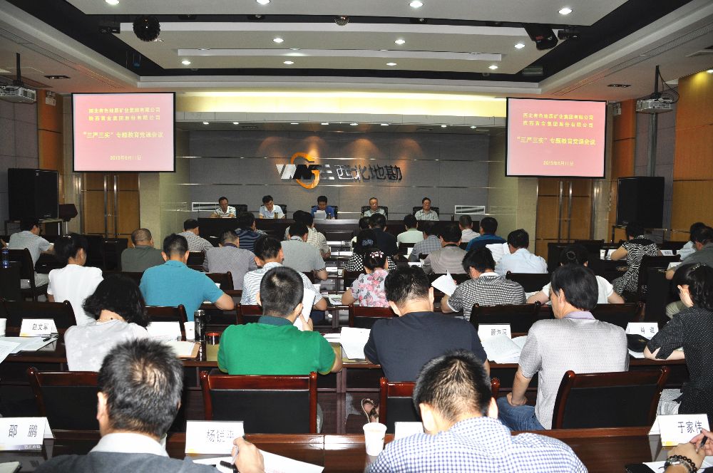6月11日上午,西北有色地質(zhì)礦業(yè)集團有限公司、陜西黃金集團股份有限公司召開“三嚴三實”專題教育黨課會議,學(xué)習(xí)貫徹中央、省委、省國資委及陜西有色集團公司黨委有關(guān)精神,對兩公司“三嚴三實”專題教育進行動員和部署。兩公司黨委書記兼董事長孫峰為黨員干部講黨課,地礦集團黨委副書記兼總經(jīng)理劉中華主持會議。兩公司領(lǐng)導(dǎo)班子成員,機關(guān)中層干部,專題教育活動辦成員,二級單位主要黨政負責(zé)人、黨委副書記、組織部長參加會議。 孫峰指出,開展“三嚴三實”專題教育是當(dāng)前全黨工作的重點任務(wù),習(xí)近平總書記關(guān)于“三嚴三實”的系列論述,為黨員干部劃定了做人、干事、從政、為官的基本底線。兩公司領(lǐng)導(dǎo)干部要充分認識“三嚴三實”專題教育的重要意義,把思想和行動統(tǒng)一到黨中央的部署上來,以自覺的態(tài)度、有力的措施開展好專題教育活動,形成風(fēng)清氣正、謀事干事創(chuàng)業(yè)的良好局面。 孫峰對此次專題教育活動提出具體要求:要聯(lián)系兩公司實際,從嚴入手,認真糾正“不嚴不實”的問題;要根據(jù)中央、省委、省國資委和陜西有色集團精神,按照兩公司《實施方案》,認真完成專題教育“規(guī)定動作”,高質(zhì)量講好黨課、組織好專題學(xué)習(xí)研討、召開好民主生活會、抓好整改落實、立規(guī)執(zhí)紀;要準確把握專題教育的總體要求,抓好主要環(huán)節(jié),把握教育主題,突出問題導(dǎo)向,堅持領(lǐng)導(dǎo)帶頭,講求活動實效;要加強組織領(lǐng)導(dǎo),精心謀劃,確保取得組織放心、群眾滿意的效果。 孫峰強調(diào),開展“三嚴三實”專題教育意義重大、影響深遠。廣大黨員干部要以此為新起點,把踐行“三嚴三實”作為履職做人的終身課題,常懷敬畏之心、常存戒尺之念,守好底線。努力建設(shè)一支忠誠、干凈、擔(dān)當(dāng)?shù)娜龂廊龑嵏刹筷犖?,推動兩公司健康持續(xù)發(fā)展。 劉中華就貫徹此次黨課會議精神強調(diào)兩點:一是各單位要迅速傳達會議精神,扎扎實實抓好“三嚴三實”專題教育工作。二是要認清新形勢,適應(yīng)新常態(tài),認真抓好生產(chǎn)經(jīng)營工作。今年地勘行業(yè)經(jīng)濟形勢低迷,生產(chǎn)經(jīng)營遇到了前所未有的困難,現(xiàn)在已進入6月份,一年馬上過半,時間緊、任務(wù)重。各級領(lǐng)導(dǎo)干部要迎難而上,勇于擔(dān)當(dāng),有所作為,要不畏困難,面向市場,創(chuàng)造性地開展工作,確保完成生產(chǎn)經(jīng)營任務(wù),將“三嚴三實”專題教育活動落到實處。